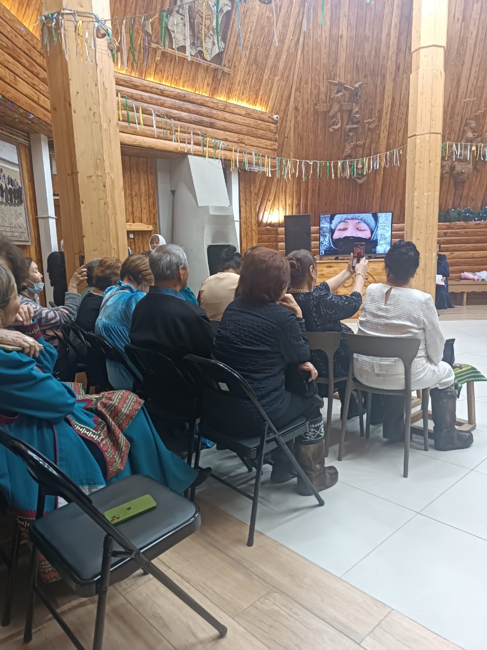 Бу дьоро айар киэһэтигэр «Далбар» народнай ансаамбыл, «Өрөгөй», «Чараҥ» ансаамбыллара ыллаан-туойан эҕэрдэлээтилэр. Евгения Кирилловна ырыатынан бары дуоһуйдубут, туманнаах тымныы да хаарыйбата.