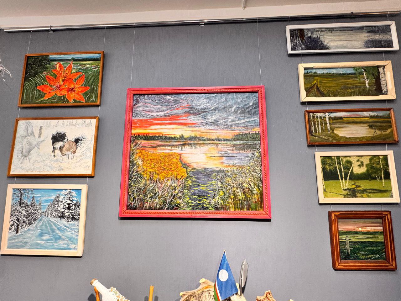 «Айбытым, туппутум ааппын ааттатыа» диэн олус дириҥ ис хоһоонноох быыстапкаҕа, кини айан таһаарбыт оҥоһуктара уонна тапталлаах Күндэйэтин кэрэ айылҕатын холустаҕа хоһуйбут хартыыналара турдулар.