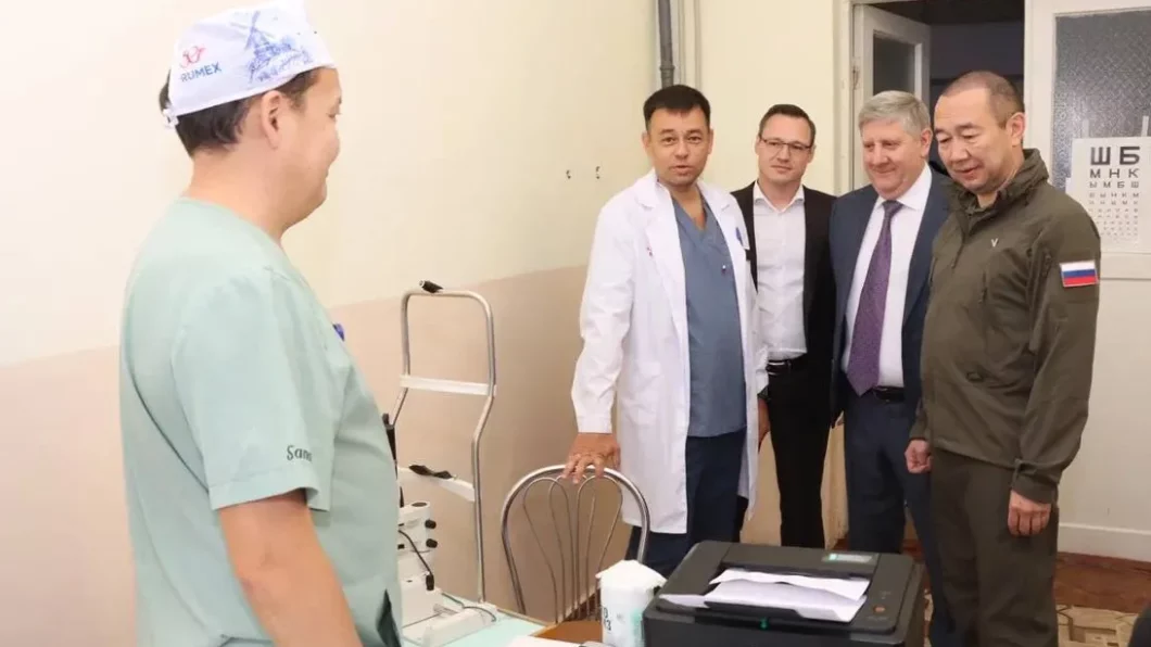 ДНӨ оробуочай сырыытын иитинэн, Ил Дархан Айсен Николаев Докучаевскайга Саха сирин быраастарын, ол иһигэр өрөспүүбүлүкэтээҕи офтальмологическай килиниичэскэй балыыһа быраастарын көрүстэ.