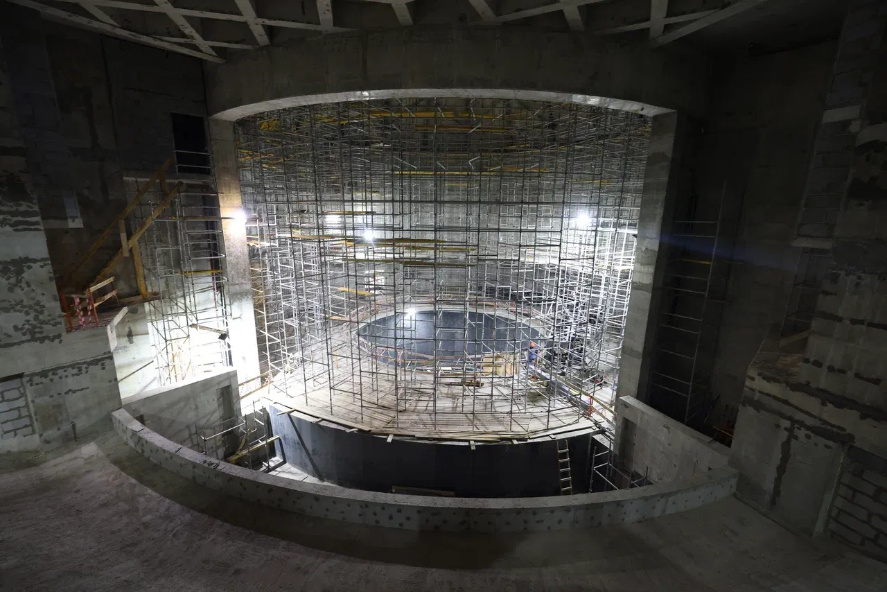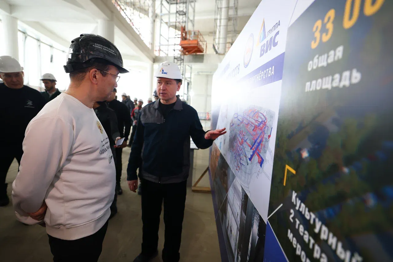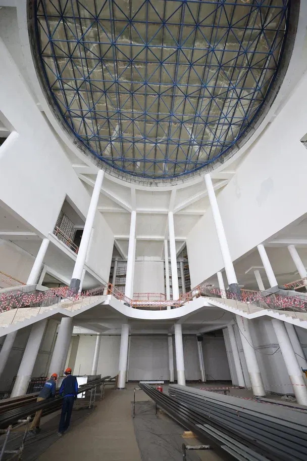 Эбийиэк сүрүн конструкциялара тутуллан бүппүттэр, фасад үлэлэрэ ыытыллыбыттар. Тутуу иһигэр инженернэй систиэмэлэри, лииптэри, ис эркинин ситэрэн оҥоро сылдьаллар. Киин холлга панормнай лииптэри таҥаллар, эскалатордары туруорбуттар.