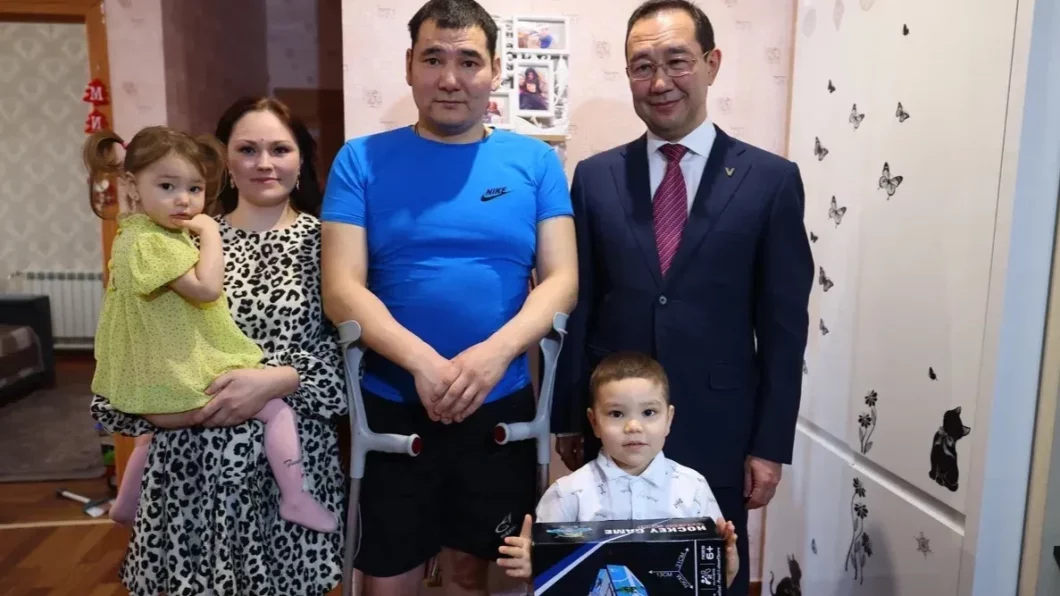 Кэбээйи улууһун дьаһалтатын өттүттэн дьиэ кэргэҥҥэ бары өттүнэн өйөбүл оҥоһуллар. 2022 сыллаахха материальнай көмө оҥоһуллубут, 2023 сыллаахха – кыбарыытар хоһун өрөмүөннүүргэ волонтердар көмөлөспүттэр, 2024 сыллаахха аҕатыгар Өрөспүүбүлүкэтээҕи кардиологическай кииҥҥэ анааһын биэрбиттэр, оттон дьиэ кэргэҥҥэ кэргэнэ оҕолорун кытта Дьокуускайга көрдөрүнэ баралларыгар материальнай көмө оҥоһуллубут.