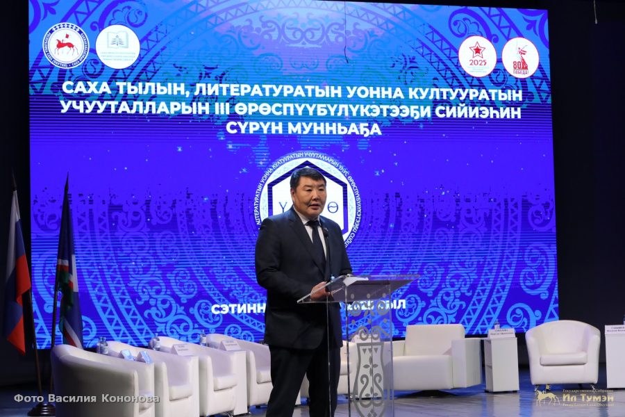 «Мин Саха Өрөспүүбүлүкэтигэр икки судаарыстыбаннай тыл тэҥҥэ туттулларын ситиhиэхтээхпит диэн бириинсиби тутуhабын. 2023 сылтан Саха Өрөспүүбүлүкэтин Ил Түмэнэ сокуоннар икки судаарыстыбаннай тылынан (нууччалыы, сахалыы) тахсалларын сокуонунан бигэргэппитэ. Саха тыла олох бары эйгэтигэр толору туттулларын ситиhиэхтээхпит. Бу хайысхаҕа, кистээбэккэ эттэххэ, уустуктар бааллар. Судаарыстыбаннай уонна бэйэни салайыныы сулууспа үлэhиттэрэ, тылбаасчыттар тыл өттүгэр таhымнарын үрдэтиигэ үлэ күүhүрүөхтээх. Уураахтар, ыйаахтар, араас докумуон икки тылынан тэҥҥэ тахсалларын ситиһэр сорук турар», – диэтэ Алексей Еремеев.