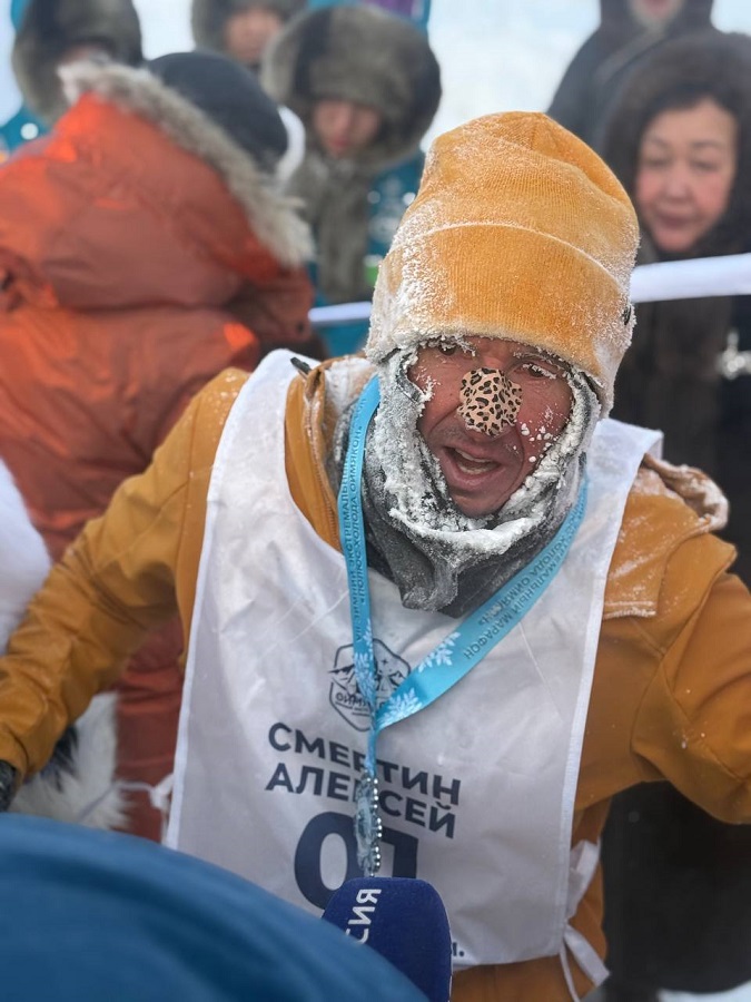 “Өймөкөөҥҥө «Тымныы полюһа» диэн экстремальнай марафону түмүктээтим. 50 км 50 сааспар – планета биир саамай тымныы сиригэр. Түмүгүм: 4:45. Бэйэм сааспар — 1 миэстэ. Тымныы усулуобуйаҕа сөптөөх түмүк дии саныыбын. Бу сүүрүү миэхэ сезон рекорда буолбатах. Бу — айан биир чааһа, тус кыахпын атын өттүттэн көрөр баҕа санаа. 45 кыраадыстаах Сахаара кэнниттэн, олох утары хайысханан – тымныы диэки барбытым. Онон хас биирдии суолталаах түгэн тулууру уонна ис турук саҥа көрүҥүн арыйар. Тымныы усулуобуйаҕа 50 км дистанция 50 сааспар биир бэлиэ бэлэҕинэн буолла. Өймөкөөҥҥө Тымныы полюһугар марафоҥҥа кыттыым быраатым Евгений төрөөбүт күнүгэр сөп түбэстэ. Бу сүүрүүбүн киниэхэ бэлэх быһыытынан аныыбын” диэн суруйда бэйэтин телеграм-ханаалыгар Алексей Смертин.