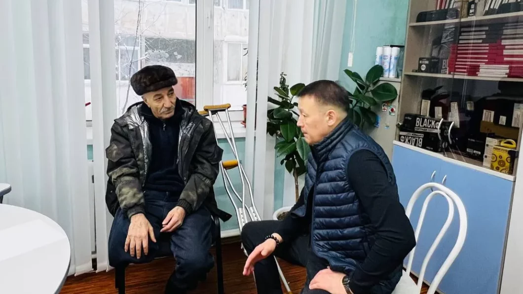 Алдан оройуонун Аллараа Кураанах бөһүөлэгин баһылыга Александр Усенко байыаннай дьайыы кыттыылааҕын аҕатын Хикмет Искандеровы кытта көрүстэ.