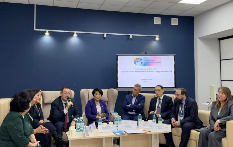 Дьокуускайга туруктаах сайдыыга VI Хотугу пуорум чэрчитинэн “Арктика мэдиссиинэтэ: бииргэ үлэлээһин полюһа” дискуссия буолла.
