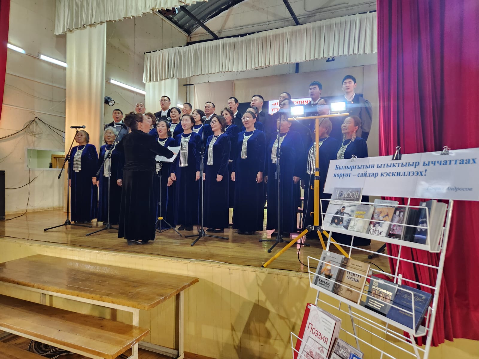 Гаврил айар киэһэтэ соторутааҕыта эрэ ырыата суруллан, «Баайаҕа өрөгөй ырыатын» быһыытынан бигэргэммит айымньыны күргүөмүнэн толорууттан саҕаланна. Үгүс көлүөнэ ыччаты музыка эйгэтигэр уһуйбут хору бэлэмнээччи Марита Потапова идэтийбит үрдүк таһымнааҕа – дьону түмэр күүстээх эбит диэн санааҕа кэлэҕин. Онно этиллэрин курдук: