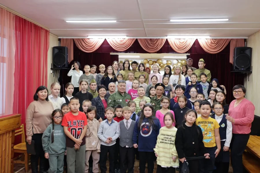 Байыаннай дьайыы бэтэрээнэ Томпо улууһун үөрэнээччилэрин кытта көрүстэ