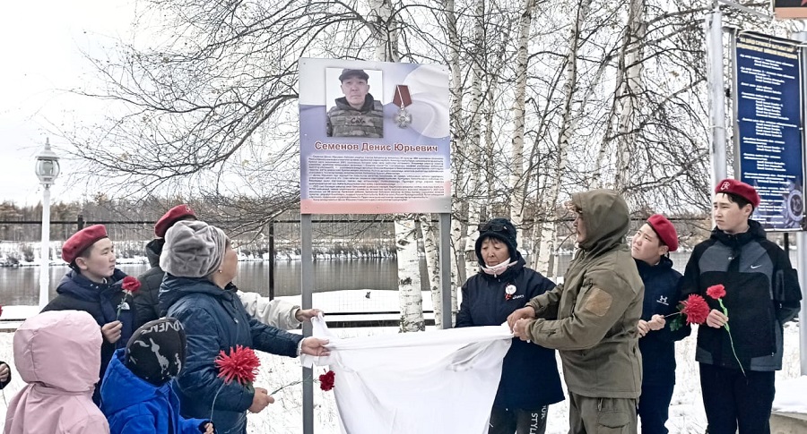 Кэбээйи улууһун Куокуй нэһилиэгэр анал байыаннай дьайыыга сырдык тыынын толук уурбут Денис Юрьевич Семенов үтүө аатын үйэтитэр өйдөбүнньүк истиэндэ арыллыыта буолла.