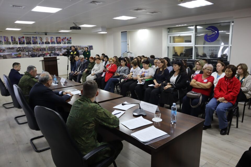 Сэтинньи 6 күнүгэр РФ Бэрэсидьиэнин иһинэн Саха Өрөспүүбүлүкэтин бастайааннай бэрэстэбиитэлэ Андрей Федотов, генерал-лейтенант Роман Греков уонна полковник Михаил Досугов «Аҕа дойду буойуннарын дьиэ кэргэттэрин кэмитиэтин», Саха сиринээҕи «Байыаннай дьайыы буойуннарын кэриэстэрэ» дьиэ кэргэн сойууһун чилиэннэрин уонна байыаннай дьайыы кыттыылаахтарын дьиэ кэргэттэрин кытта көрүстүлэр.