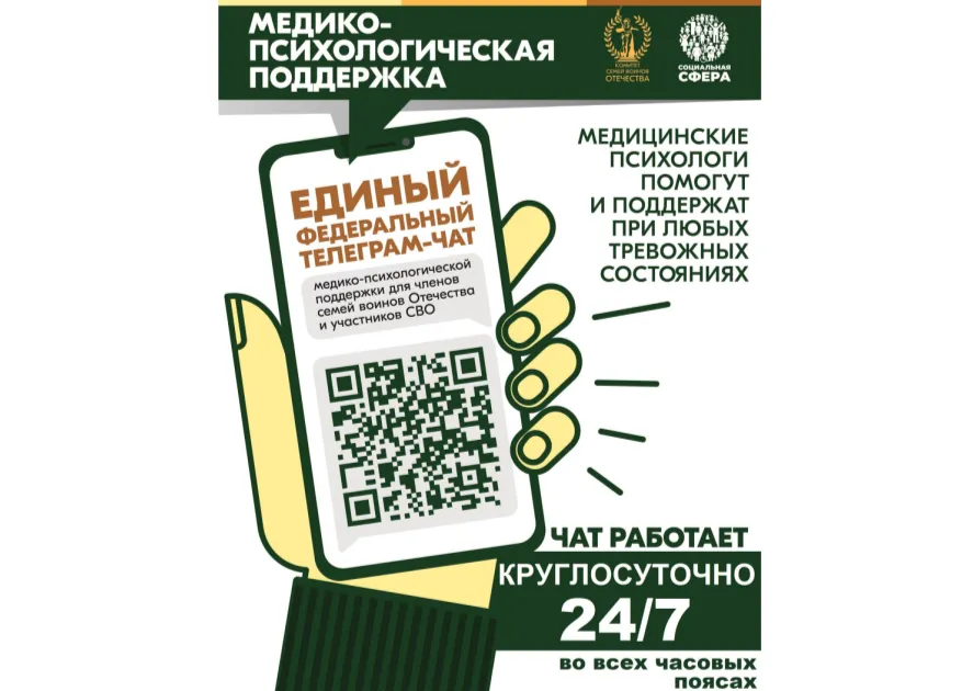 Байыаннай дьайыы кыттыылаахтарын уонна кинилэр дьиэ кэргэттэрин чилиэттэрин суукканы эргиччи медико-психологическай көмөнөн өйүүр федеральнай чат үлэлиир: https://t.me/+-NlCAoiZghk2OTNi