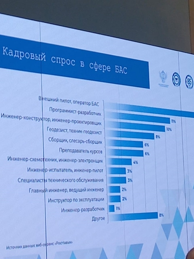 Бу эйгэ билиҥҥи ырыынак биир саамай наадалаах хайысхата буолан турар. Ол курдук 2030 сылга Арассыыйа БАС эйгэтин технологическай лиидэрдэрин кэккэтигэр киириэхтээх. Чугастааҕы 7 сылга дойдуга 1 мөл. идэтийбит киһи ирдэнэр. Күн бүгүн 26000 каадырга наадыйаллар: 23 тыһ. киһи аппарааттары үлэлэтэргэ, 1700-тэн тахса киһи разработкаҕа, 1300 киһи оҥорон таһаарыыга.