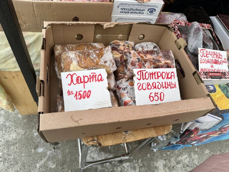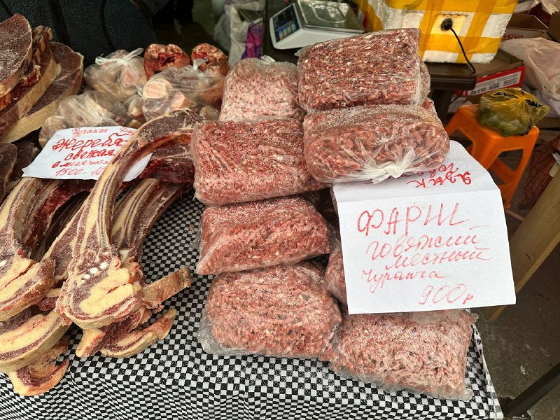 Балыктан ураты, атыыга олохтоох оҥорон таһаарааччылартан ынах, сылгы, сибиинньэ этэ, буотарах, харта, фарш, араас полуфабрикаттар (бэлэм астар), ону таһынан быйылгы саҥа мүөт баар. Дьаарбаҥка сарсыарда 10:00 чаастан киэһэ 17:00 чааска диэри үлэлиир.