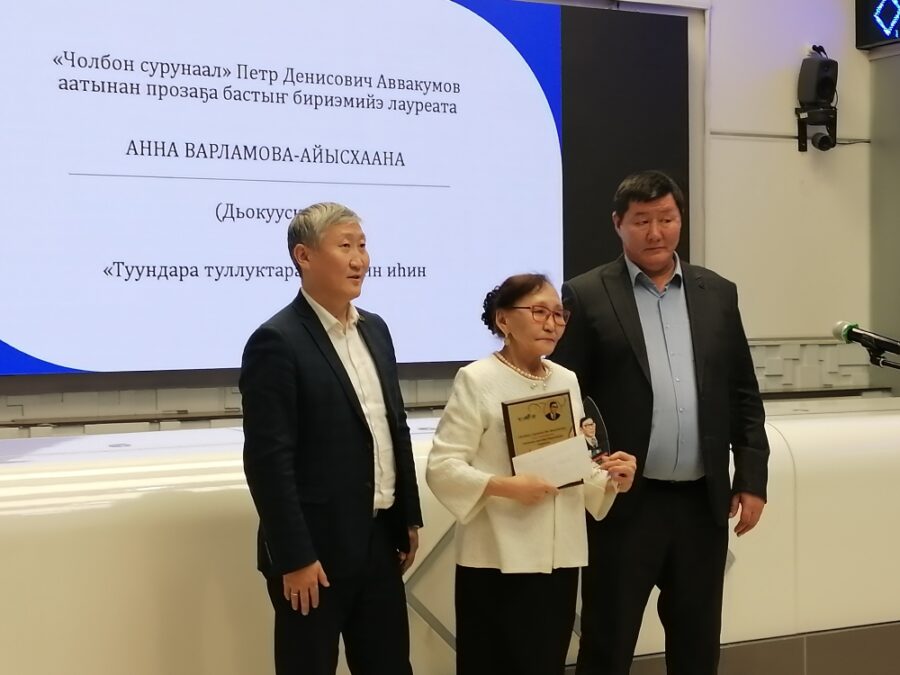 Петр Аввакумов аатынан прозаҕа бириэмийэни Горнай улууһун баһылыга Никита Андреев суруйааччы Анна Варламоваҕа-Айысхаанаҕа »Туундара туллуктара» сэһэнин иһин туттарда.