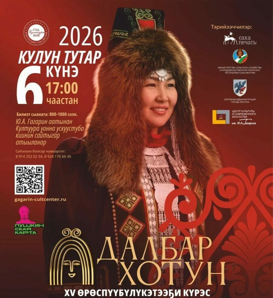 Сандал сааһы көрсө эһигини кулун тутар 6 күнүгэр 17 чаастан Ю.А.Гагарин аатынан Култуура уонна ускуустуба киинигэр саха дьахтарын мындыр өйүн, хоһуун үлэтин, үтүө санаатын, мааны майгытын арыйар “ДАЛБАР ХОТУН-2026” күрэс дьоллоох, дьоһун түһүлгэтэ долгуйа күүтэр!