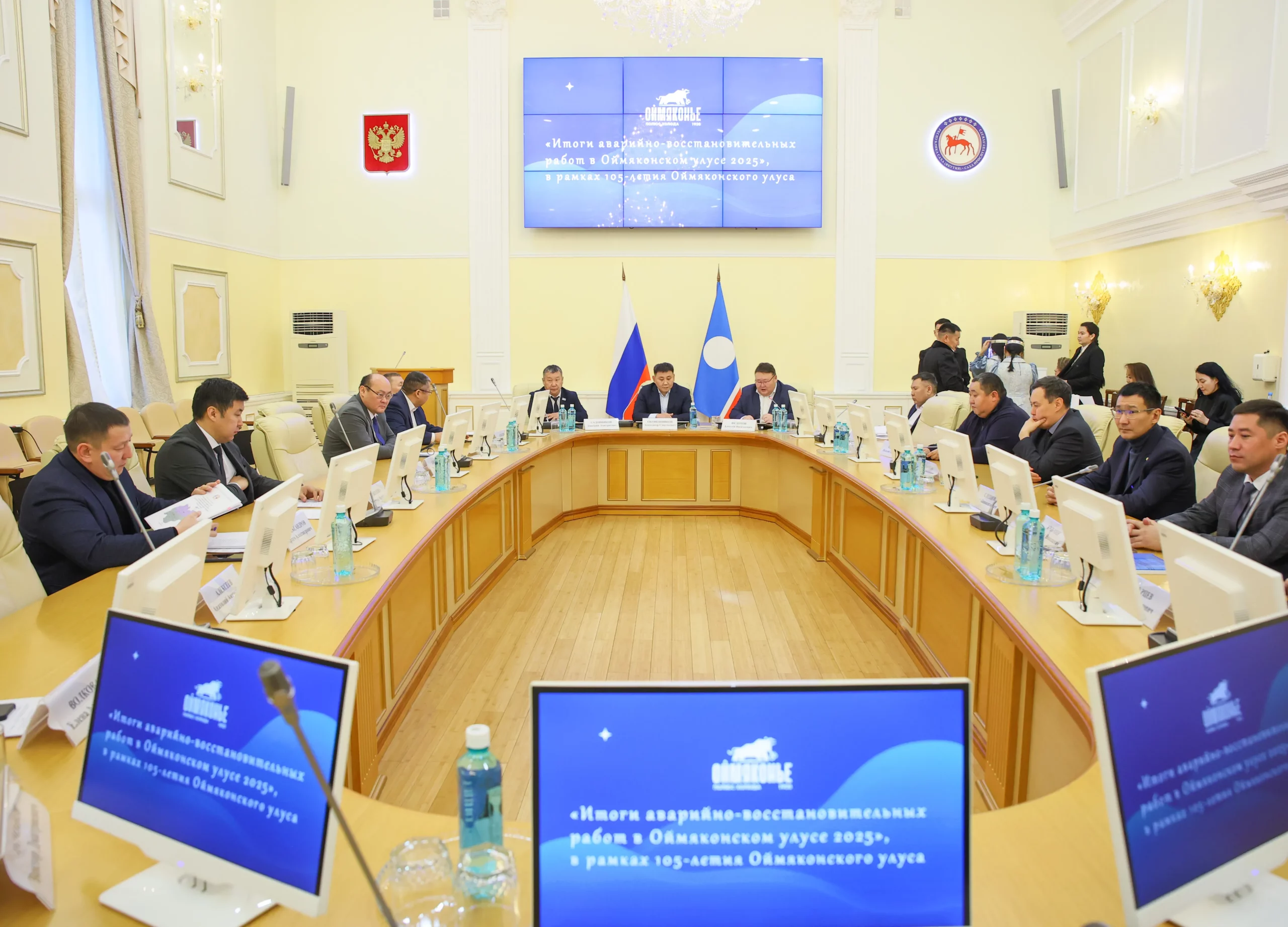 Дьокуускайга Өймөкөөн улууһа тэриллибитэ 105 сылыгар анаммыт «Саахал кэннэ чөлүгэр түһэрэр үлэлэр — 2025 түмүктэрэ» диэн төгүрүк остуол буолла. Дьүүллэһиигэ СӨ Бырабыыталыстыбатын Бэрэссэдээтэлин бастакы солбуйааччы Дмитрий Садовников, Өймөкөөн улууһун баһылыга Александр Оконешников, ону тэҥэ сайыҥҥы халаан содулун туоратыыга кыттыбыт өрөспүүбүлүкэтээҕи биэдэмистибэлэр уонна сулууспалар бэрэстэбиитэллэрэ кытыннылар.