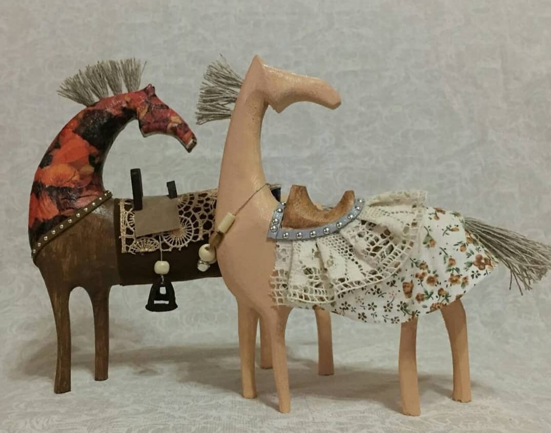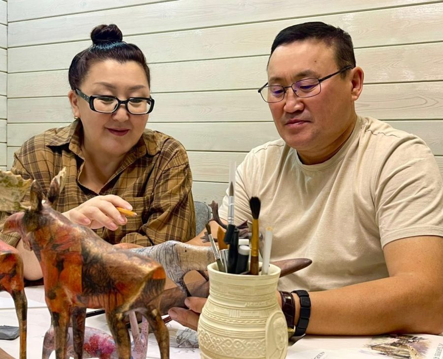 Оҥоһуктарын маҥнайгы дьүүллээччинэн кэргэнэ Мария Владимировна буолар. Кэргэнэ бэйэтэ эмиэ ураты айар куттаах, дьоҕурдаах буолан, үгүс үлэтин үтүө сүбэһитэ. Мария нарын-намчы мас оҥоһуктары оҥорор, керамиканы баһылаабыт, олоҥхо уобарастарынан ураты тыыннаах таҥас кэлиэксийэтин айбыт маастар.