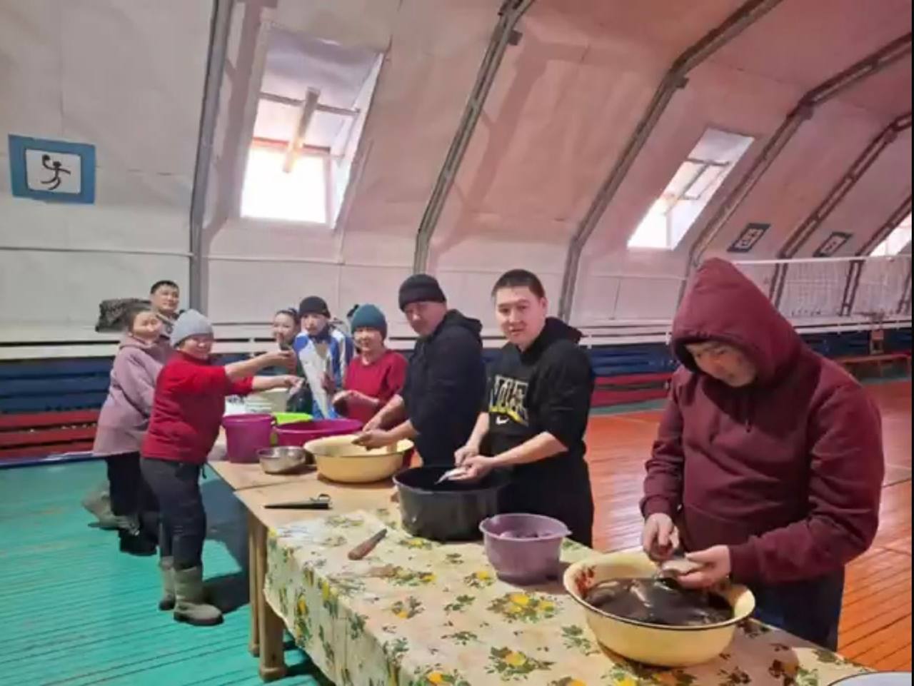 Өргүөт нэһилиэгин олохтоохторо биир санаанан сомоҕолоһон, уолаттарыгар анаан ыһаарыламмыт балык, сылаас тыыннаах араас бурдук аha астанна. Астарын барытын ыраастык тутан, тоҥорон, суолга буорту буолбат гына анаан бэлэмнээтилэр.