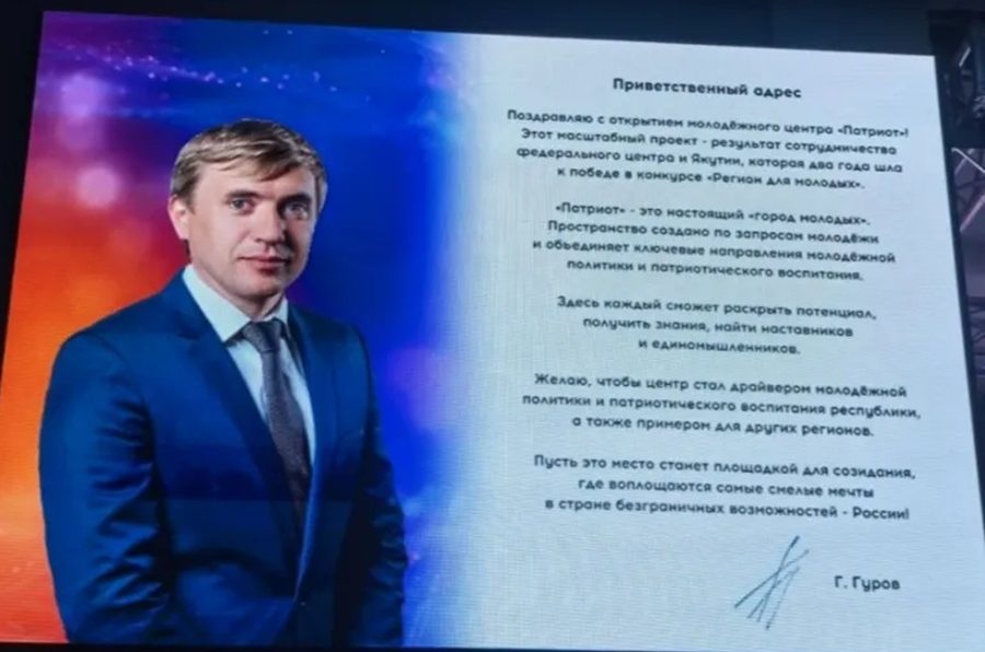 “Патриот” ыччат киинэ аһыллыбытынан эҕэрдэлиибин! Бу улахан бырайыак – федеральнай киин уонна Саха сирин үлэтин түмүгэ, икки сыл устата “Эрэгийиэн ыччаттарга” куонкуруска кыайыыга дьулуспута. “Патриот” – дьиҥнээх “эдэрдэр куораттара”. Бу киин ыччат баҕа санаатынан тэриллибитэ уонна ыччат бэлиитикэтин уонна патриотическай иитиитин сүрүн хайысхаларын түмэр. Манна хас биирдии киһи бэйэтин кыаҕын арыйыан, билиини ылыан, уһуйааччылары уонна биир санаалаахтары булуон сөп. Киин өрөспүүбүлүкэ ыччатын бэлиитикэтин уонна патриотическай иитиитин сайыннарар күүһүнэн, ону тэҥэ атын эрэгийиэннэргэ холобур буолуон баҕарабын», — диэн Григорий Гуров эттэ.