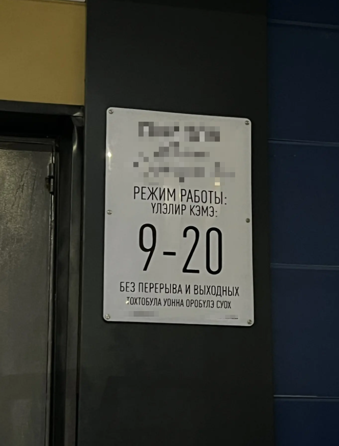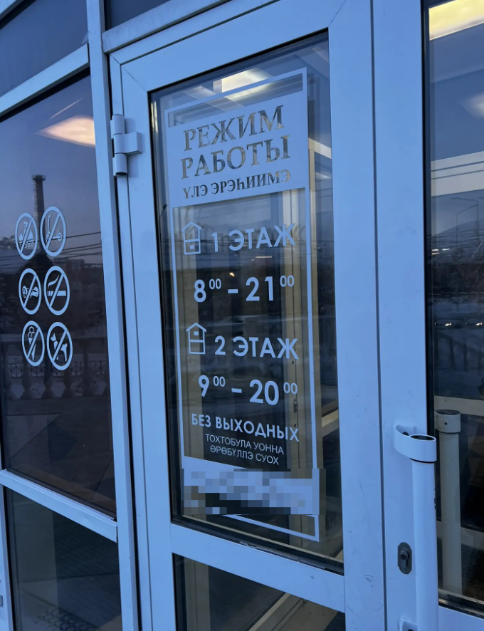 Оттон Дьокуускайга маҕаһыын ааттарын, вывескаларын, ыйар бэлиэлэрин, сэрэтэр суруктарын нууччалыы уонна сахалыы тылынан эмиэ суруйаллара кэрэхсэбиллээх. Ол эрээри, сахалыы тылбааһыгар олус элбэх вывескаҕа сыыһалаах буоларын бэлиэтээн, хаартыскаҕа түһэртээтибит: