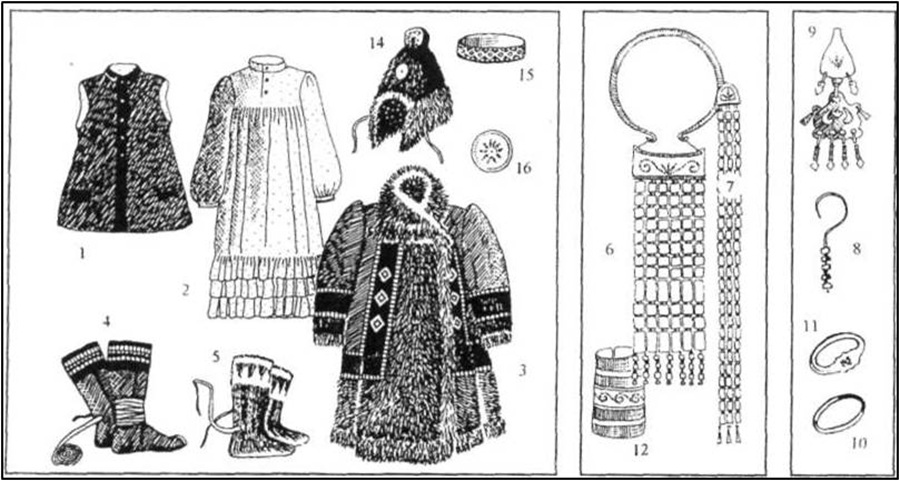 - Бэгэччэк таҥаһа — сон сиэҕин, үтүлүк иһинэн бааналлара (меховой браслет).