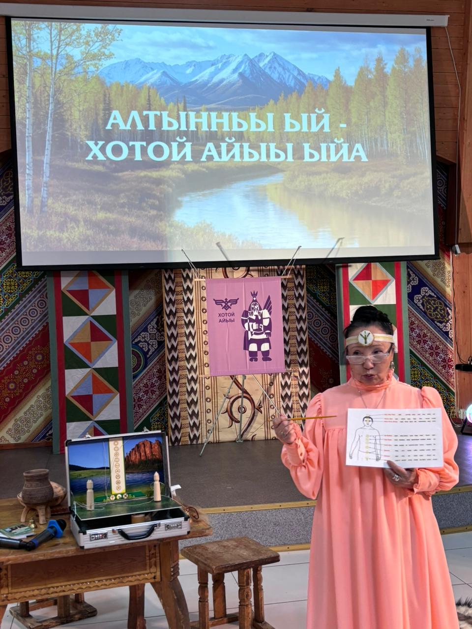 Хотой Айыы домун Лукина Ирина Егоровна – Уйусхаана кэлбит дьоҥҥо толоттордо. Айыы холумтанын, туттар тэрилин туһунан билиһиннэрдэ. Айыы холумтана сэттэ ытык маллаах: сандалы, сэргэ,чороон, көмүлүөк, чуораан, дэйбиир, туймуу. Айыы холумтана саха ыалын ытык миэстэтэ. Уйусхаана Айыы холумтанын үөрэҕин хас биирдии киһи билиэхтээҕин, күүскэ тарҕатары сүбэлээтэ.