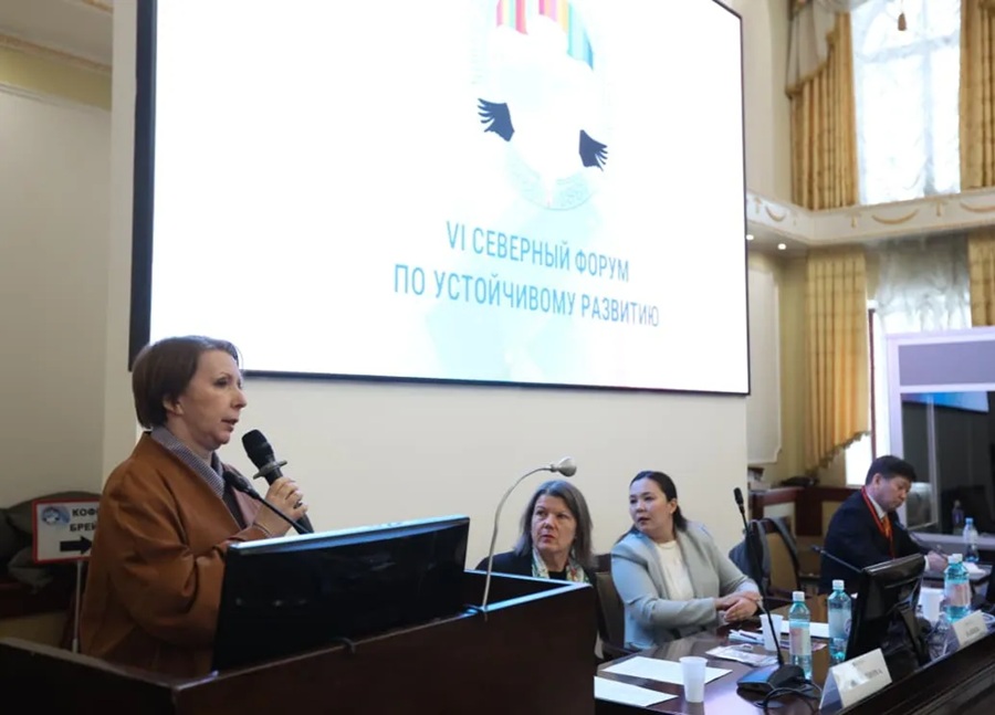 Саха сирин Бырабыыталыстыбатын Бэрэссэдээтэлин солбуйааччы Ольга Балабкина Vl Хотугу пуорумҥа төрүт норуоттар тылларын, култуураларын өйүүр үлэни билиһиннэрдэ.