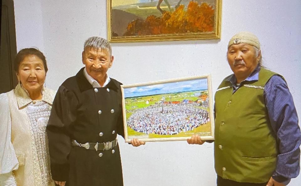 Биһиги Оһуокай түмсүүбүтүттэн Дархаттар сүбэлэрин бэрэссэдээтэлэ, Дархан этээччи Валентин Васильевич Хорунов 2012 сыллаахха Оһуокайга Гиннес рекордун хартыынатын бэлэх туттарда. Саха норуотун ойуутун, оһуорун тилиннэрбит улуу маастарга махталын этэн туран, өссө да уһуннук олороругар баҕарда.