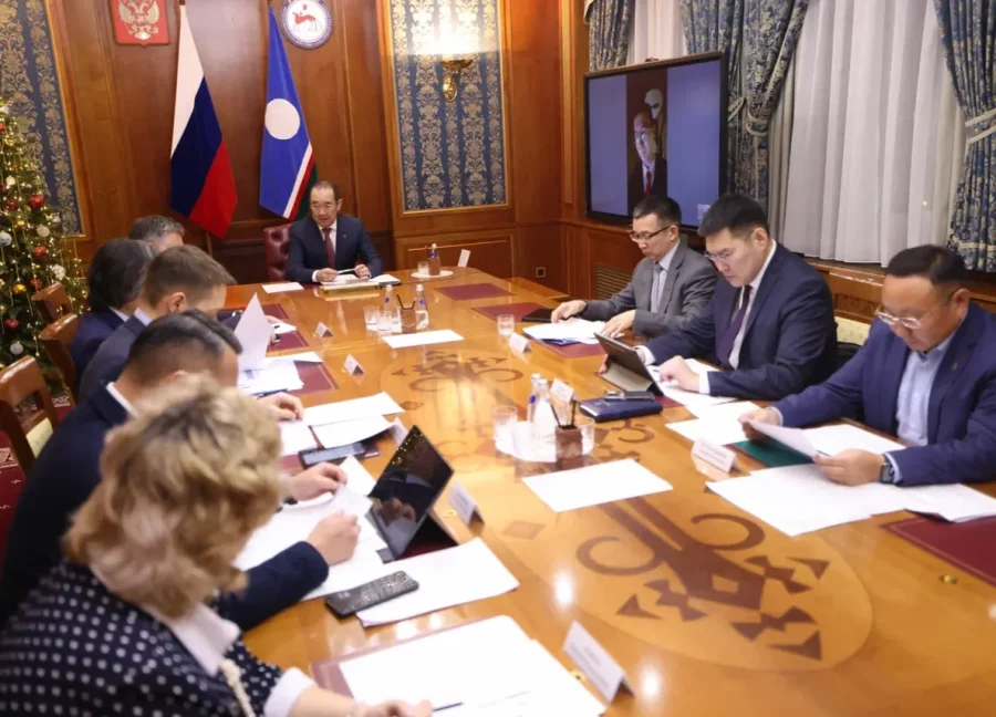Ил Дархан Айсен Николаев Саха сирин Соҕуруу уонна Арҕаа өттүн гаастааһын боппуруостарыгар мунньаҕы ыытта.