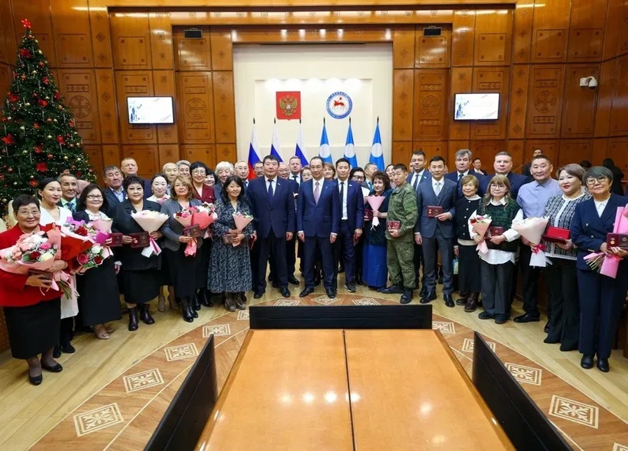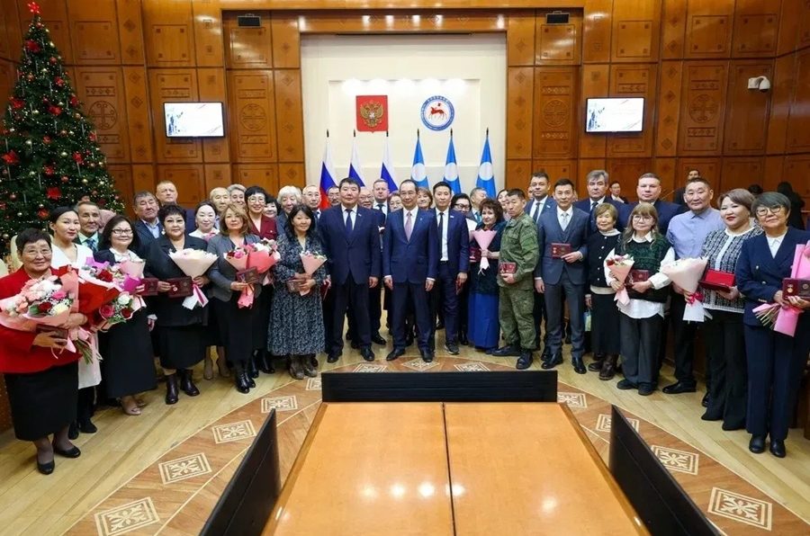 Саҥа сылы көрсө бүгүн, ахсынньы 19 күнүгэр, Ил Дархан Айсен Николаев РФ уонна Саха Өрөспүүбүлүкэтин судаарыстыбаннай наҕараадаларын туттарда.
