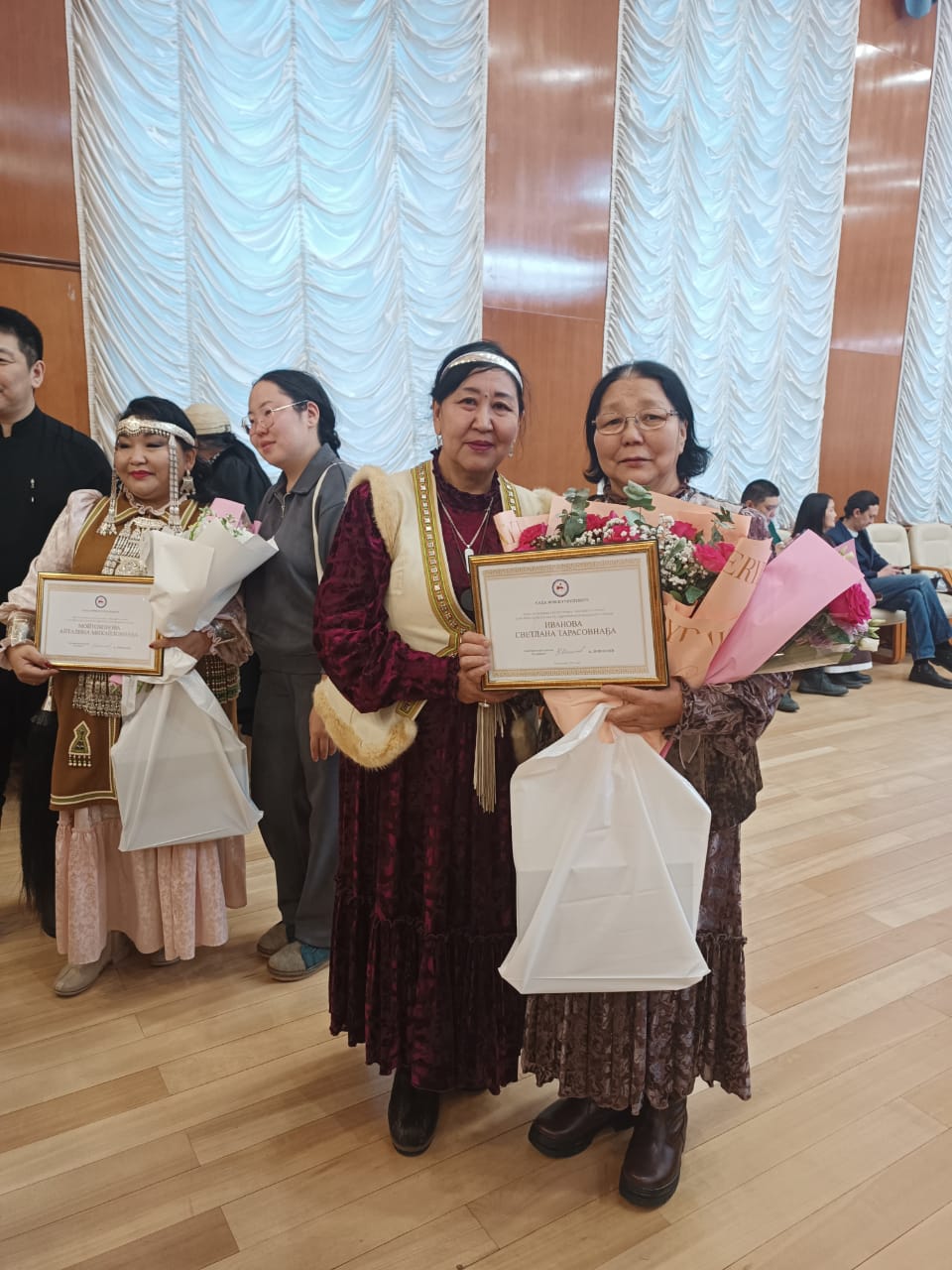 Биһиги республикатааҕы Оһуокай түмсүүтүттэн сэттэ киһибит бу үрдүк аакка тигистэ. Кинилэр ортолоругар Дархан этээччилэрбит Үөһээ Бүлүүттэн Сахайта Мойтохонова, Егор Егоров- Үс Дьөгүөр, Сунтаартан Светлана Зедгенидзева, Дьокуускай куораттан Дмитрий Иванов ,Ньурбаттан Тамара Дмитриева, үтүөлээх этээччи Чурапчыттан Валентина Дьячковская, Бүлүүттэн Оһуокай түмсүүтүн салайааччыта Светлана Иванова бааллар. Дархан этээччилэрбит Светлана Зедгенидзева, Сахаайта Мойтохонова, үтүөлээх этээччи Валентина Дьячковская бэйэлэрин этэллэрин таһынан оҕону, ыччаты үөрэтиигэ утумнаахтык дьарыктаналлар. Холобур, Сахаайта Мойтохонова икки сүүстэн тахса үөрэппит үөрэнээччитэ оһуокайынан утумнаахтык дьарыктана сылдьаллар. Наҕараадалааһын инниинэ Ил Дархан Айсен Сергеевич Николаев стипендиаттары эҕэрдэлээтэ уонна норуот айымньытын тарҕатааччыларга махталын биллэрдэ.