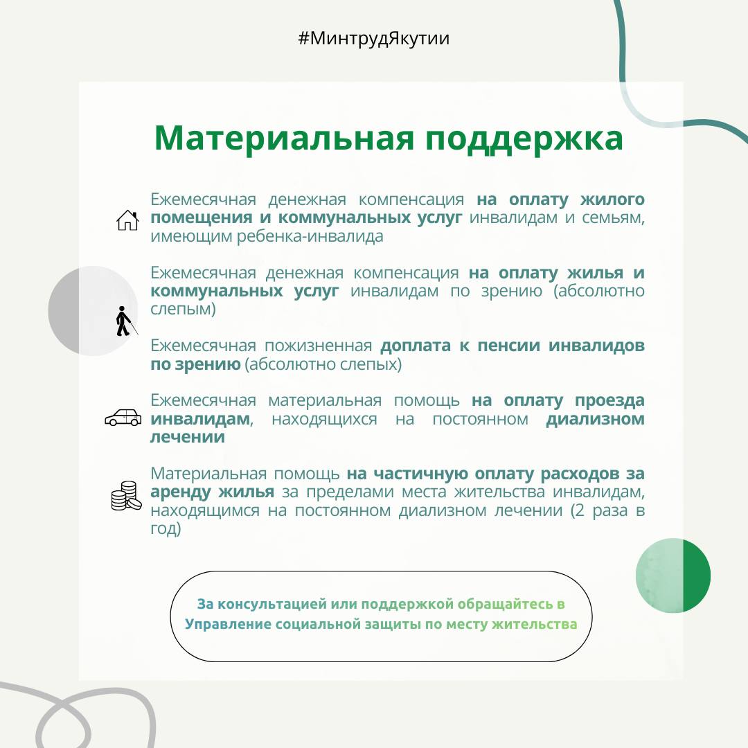 Инбэлииттэргэ уонна инбэлиит оҕолоох дьиэ кэргэттэргэ араас өрүттээх көмө оҥоһуллар. СӨ Үлэҕэ уонна социальнай сайдыыга  министиэристибэтэ оҥорбут карточкаларыгар көмө миэрэлэрин көрүҥ.