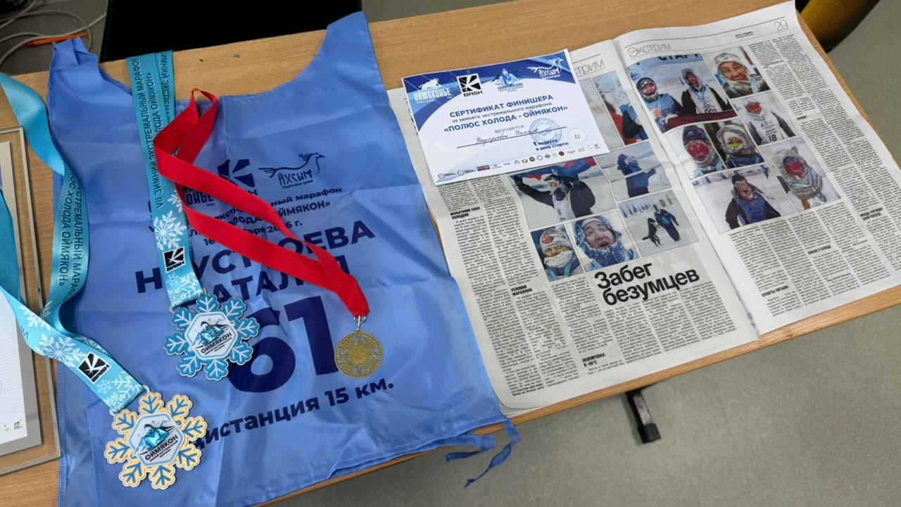 Онтон сүрүн сыалбытынан бу аҕыйах хонуктааҕыта «Оймякон — Полюс холода» марафон кыттыылааҕа, 15 км сүүрүүгэ кыайыылаах Наталья Тимофеевна Неустроева буолар. Куруутун уулуссаҕа кэлэ-бара, үлэ быыһыгар көрсөн ааһар киһибин тутан олорон истэн, сүргэбит көтөҕүлүннэ. Киһи баҕа санаатын хас баҕарар сааһыгар толоруон сөп эбит диэн күүстээх санааны барыбытыгар сахта. Хамсаныы  олох төрдө буоларын бигэргэттэ. Бастаан утаа кыралаан пааркаҕа хааман, онтон сыыйа манежка сүүрэн саҕалаабыт. Салгыы тириэньэр  көмөтүнэн утумнаахтык дьарыктанан,  тымныыга сүүрэрин сөбүлээн, 4-с сылын кыттыбыт.  Кытаанах тулуур, дьиссипилиинэ,  бириэмэни тутуһуу  кини сыалын ситэригэр көмөлөспүт. Маны таһынан  Наталья ыллыыр дьоҕурдаах.  Хайаларга дабайар дьону кытта алтыһан, «Турист России» бэлиэ хаһаайката буола үүммүт. «Сибиэһэй салгын, үтүө доҕоттор, кэрэ миэстэлэр — бу барыта киһи сүргэтин көтөҕөр, кэрэни кэрэхсииргэ үөрэтэр,» — диир. Кини кэпсээнин хаартыскалара ситэрэн-хоторон биэрдилэр. Санаабыт да тиийбэт сиригэр кинини кытта тэҥҥэ сылдьыспыт курдук сананныбыт. Түмүгэр Наталья ыйытыыларга хоруйдаата, хааман саҕалааҥ диэн барыбытын ыҥырда.