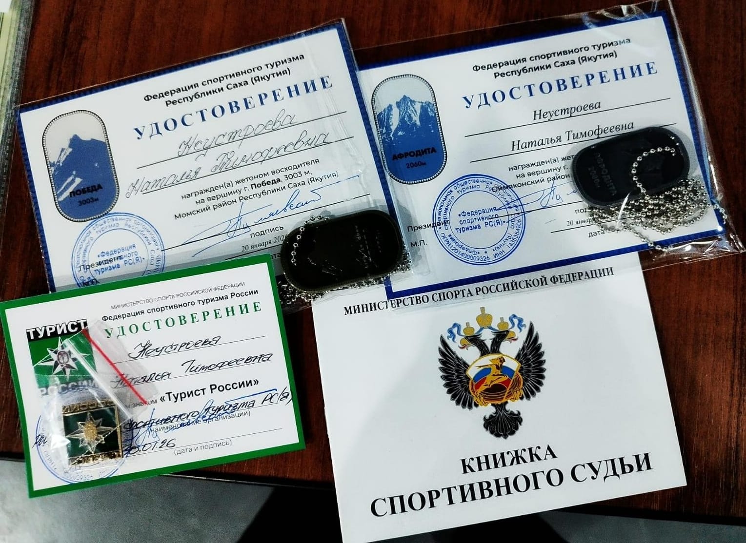 Миэхэ 2 жетон: «Афродита» хайата (2060) уонна саамай үрдүк хайа «Победа» (3003) бааллар. «Победа» хайаҕа дабайбыт сырыыбын Кыайыы 80 сылыгар төрөппүттэрбэр анаабытым. Аҕам Николаев Тимофей Григорьевич — Аҕа дойду сэриитин кыттыылааҕа, ийэм Иванова Татьяна Федотовна тыыл, үлэ бэтэрээнэ этилэр.