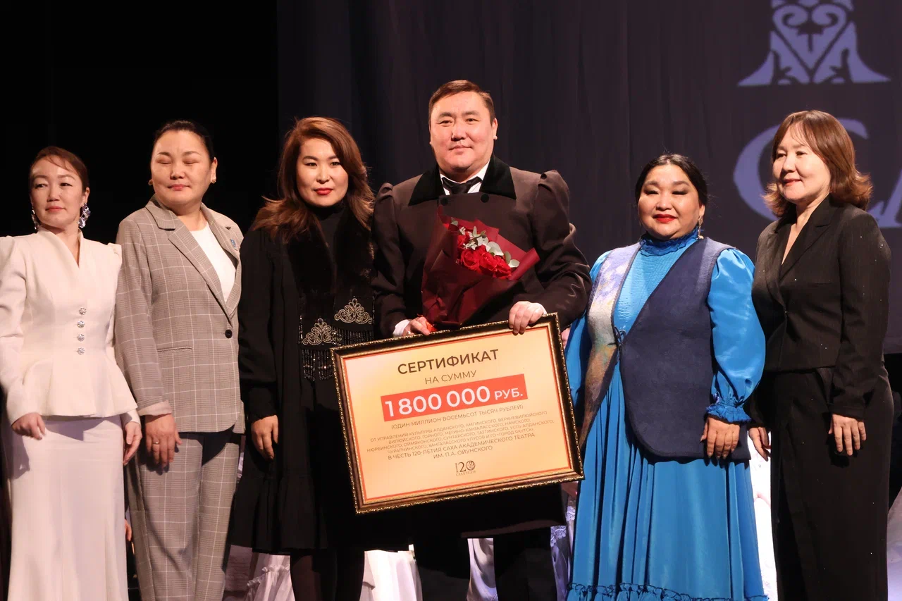 Өрөспүүбүлүкэ улуустарын уонна куораттарын култуураларын управлениеларын салайааччылара Саха национальнай тыйаатыра төрүттэммитэ 120 сылынан бэйэлэрэ көҕүлээн, 1 мөл. 800 тыһыынча суумалаах сэртипикээти туттаран, көрөөччүлэр махталларын ыллылар уонна Ил Дархаҥҥа Култуура сылын биллэрбитинэн махталларын тириэртилэр.