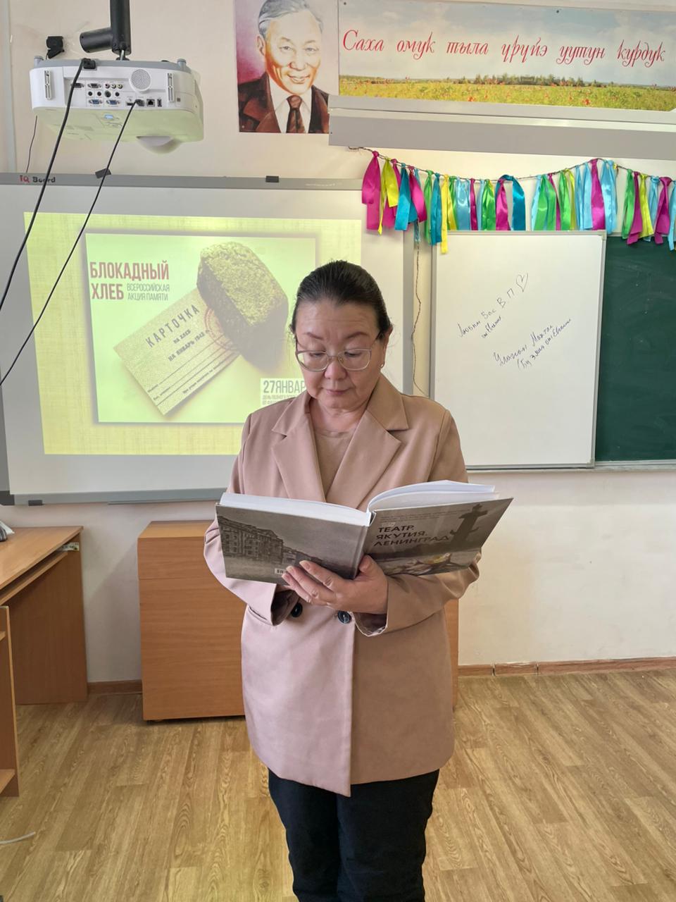 Диана Егоровна «Блокада килиэбэ» диэн кылаас чаастары ыытта.