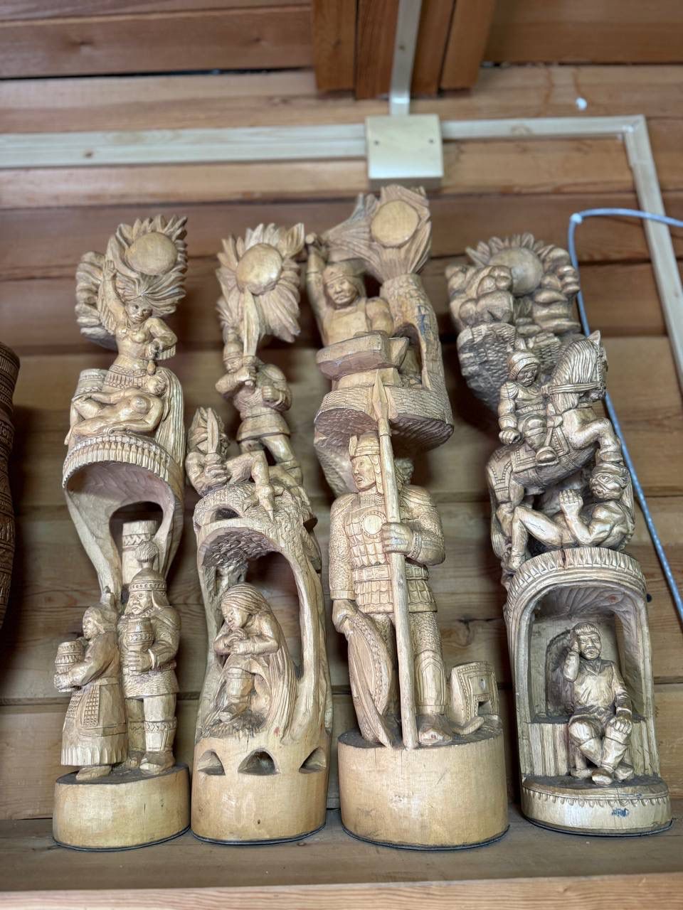 — 500‑чэ буоллаҕа дии. Урукку кэмҥэ дьоҥҥо бэлэхтиир этим. Ол тарҕаммыта үгүс буоллаҕа. Чорооннорбун олох уратытык чочуйан оҥорор буоллум. Ханна да суох оҥоһуктар. Сарсыарда 4 чаастан саҕалаан үлэлиибин. “Барҕа Баһылай түмэлэ” диэн ааттаан мас оҥоһугум мусуойун тэрийиэхпин баҕарабын. Норуот маастарын быһыытынан бэйэм туспа суолбун, буочарбын булан, саха фольклорун, олоҥхотун дириҥник чинчийэн, айымньылары кытта ситимниибин. Кэлиҥҥи кэмҥэ Олоҥхо ыһыахтарыгар мас оҥоһуктарбын эрдэттэн оҥоробун. Уруһуйдьут идэлээхпин. Мас уустара өбүгэ саҕаттан үгэс буолбут оҥоһуктарбыт сайдыыларын туһугар үлэлиибит. Онон ураты толкуйдаах үлэлэрбин үйэтитэргэ дьулуһабын.