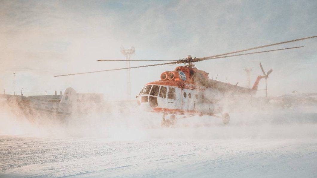 Силиэстийэлиир-суһал бөлөх «Полярные авиалинии» АХ Ми-8 бөртөлүөтүнэн Усуйаана Дьүкээгиригэр көттө.