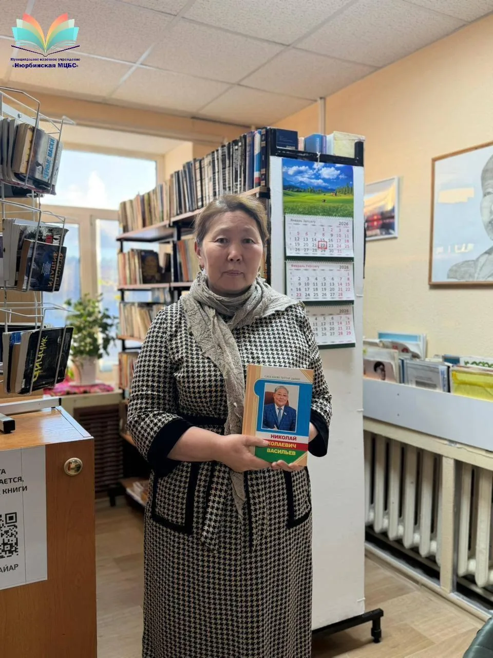 Ф.Г.Сафронов аатынан Улуустааҕы киин бибилэтиэкэ пуондата өссө биир кинигэнэн эбилиннэ. Ол курдук, бибилэтиэкэҕэ Александра Васильева ньурбалар биир дойдулаахтара Николай Николаевич Васильев туһунан “Саха киэн туттар дьоно” сериянан тахсыбыт кинигэни бэлэх уунна.