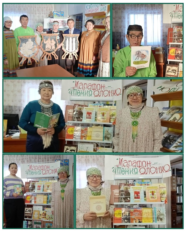 Тимофей Сметанин аатынан модельнай бибилэтиэкэ сэбиэдиссэйэ Варвара Никифоровна Спиридонова, олохтоох оскуола бибилэтиэкэрэ Антонина Петровна Павлова тэрийиилэринэн «Олоҥхону ааҕабыт» диэн марафоҥҥа нэһилиэкпит тэрилтэлэрин үлэһиттэрэ көхтөөхтүк кытыннылар: оскуолаттан Мария Гуляева, бэтэринээрийэттэн Людмила Игнатьева, «Күннэй” маҕаһыын сэбиэдиссэйэ Анастасия Игнатьева, «Угуйаан» култуура киинин үлэһиттэрэ Зоя Гуляева, Саргылана Спиридонова, Дмитрий Сметанин, кыраайы үөрэтээччи Геннадий Иванов, «Туосчаан» куруһуок салайааччыта Оксана Игнатьева, кырдьаҕастар түмсүүлэрин салайааччыта Нина Олесова.