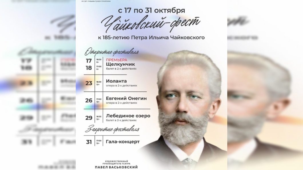 Дьокуускай куоракка алтынньы 17-31 күннэригэр ыытыллар “Чайковский-фест. Якутск” опера-балет бэстибээлигэр Мариинскай уонна Улахан тыйаатыр, ону сэргэ Суорун Омоллоон аатынан Опера уонна балет тыйаатырын сүрүн артыыстара кыттыахтара.