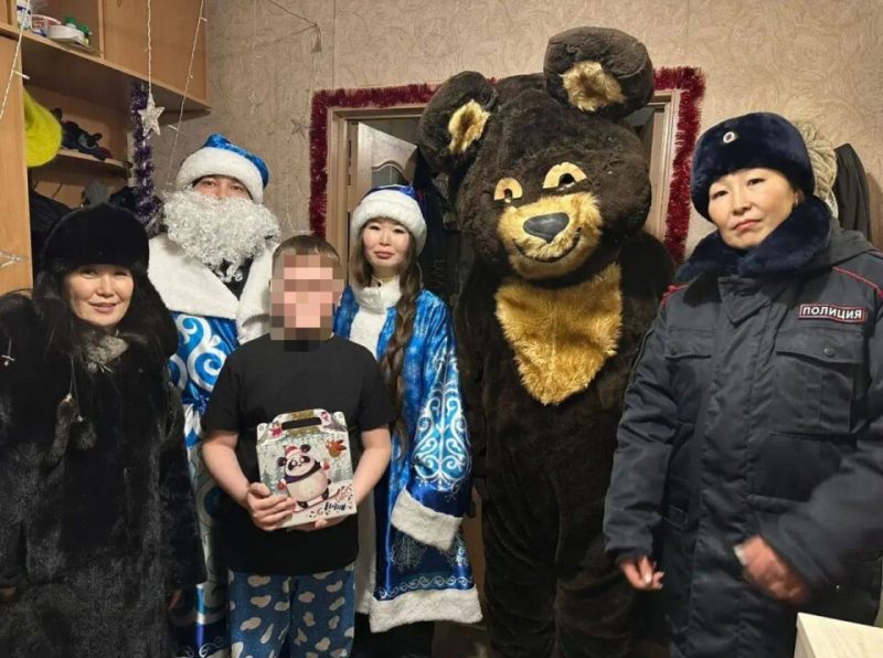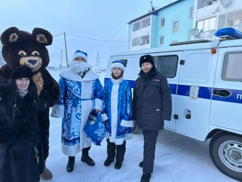 Полицейскайдар оҕолорго Саҥа дьыллааҕы ураты бырааһынньыгы бэлэхтээтилэр