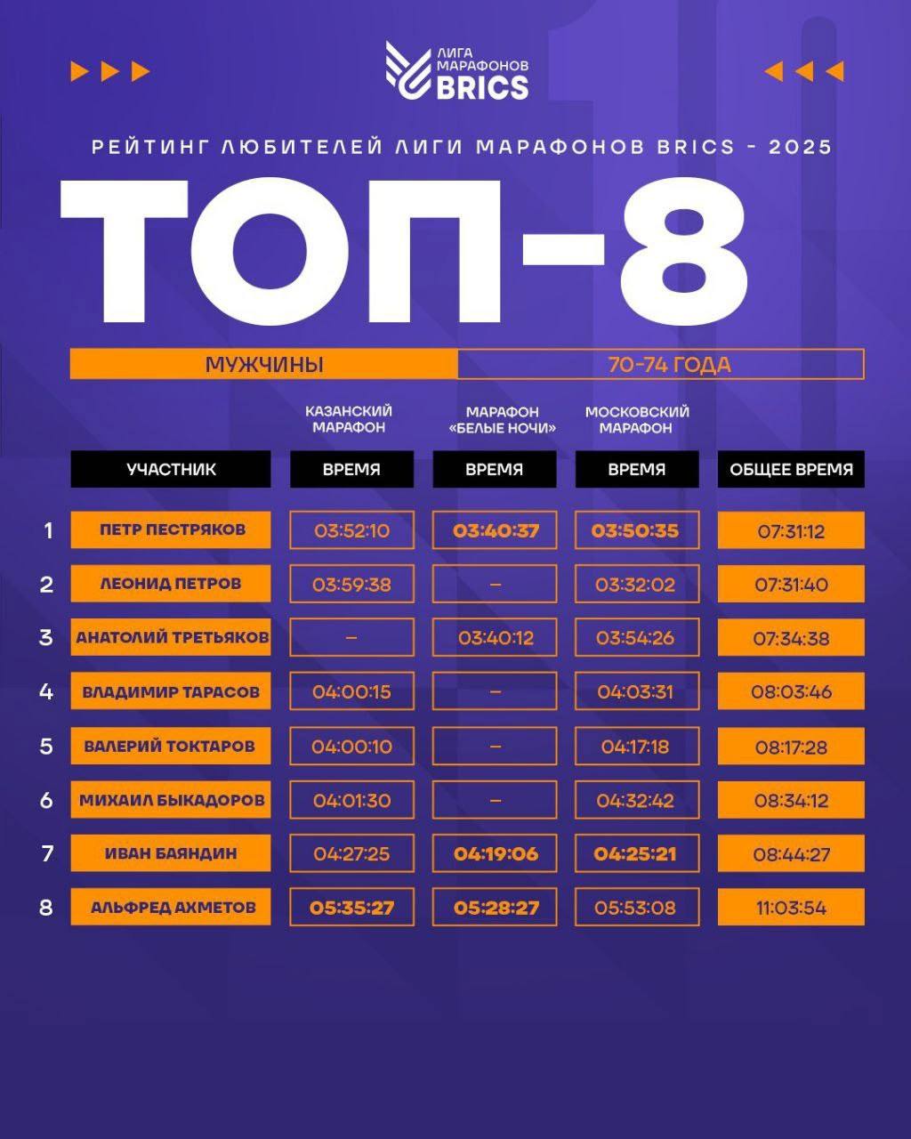 Пётр Пестряков 3 марафон түмүгүнэн 70-74 саастаахтарга чөмпүйүөн үрдүк аатын сүктэ