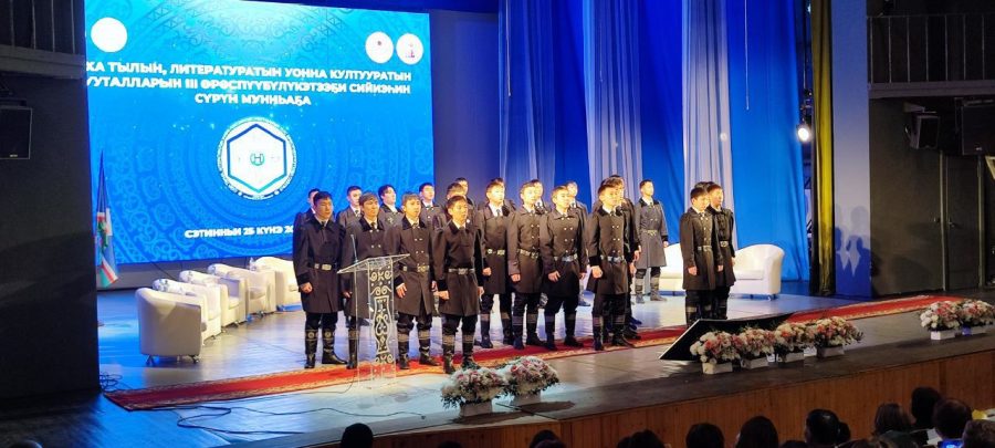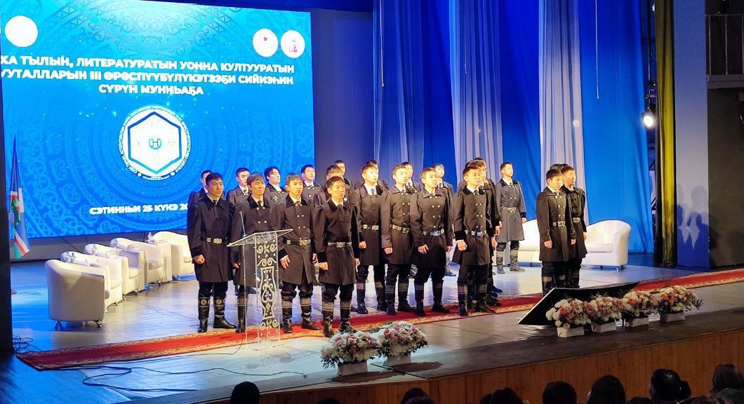 Тыйаатырга сарсыардаттан күүстээх муусука ньиргийдэ, сахалыы таҥастаах кэрэчээн кыргыттар, хотой уолаттар хас биирдии дэлэгээти уруйдуу-айхаллыы көрүстүлэр. Иккис мэндиэмэҥҥэ “Үөрэх тылын сайдар эйгэтэ” быыстапка тэрилиннэ, хаартыскаҕа түһэр ураты, сахалыы муннуктары тэрийбиттэр.