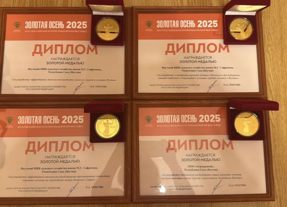 «Көмүс күһүн» Бүтүн Арассыыйатааҕы агробырамыысыланнай быыстапкаҕа түмүктэри таһаарыы бастакы күнүгэр Арассыыйа Наукаларын академиятын Сибиирдээҕи салаатын «Дьокуускайдааҕы научнай киин» Федеральнай чинчийэр киинин Тыа хаһаайыстыбатын Дьокуускайдааҕы научнай-чинчийэр институтун учуонайдара киллэрбит бары сайаапкаларынан көмүс мэтээллэргэ тигистилэр. Бу туһунан СӨ Тыатын хаһаайыстыбатын министиэристибэтигэр иһитиннэрэллэр.