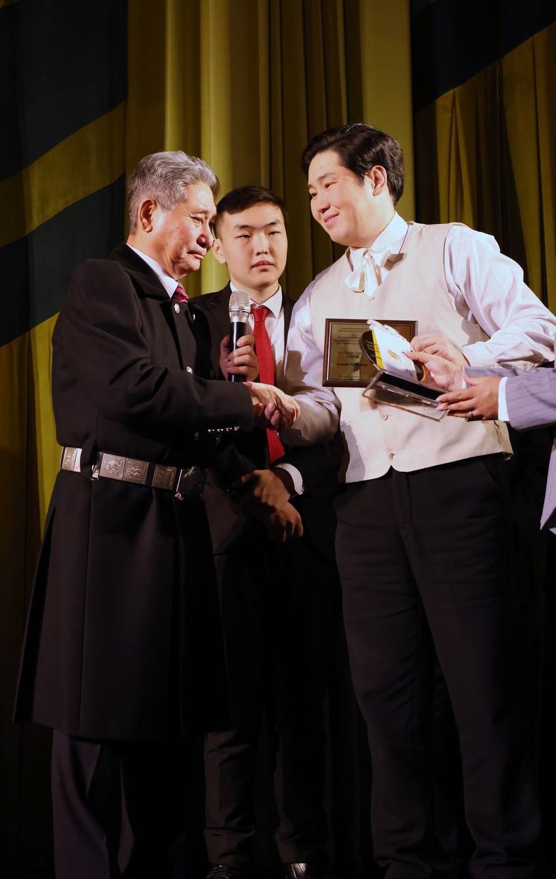 «Тыйаатыр эйгэтигэр ситиһиилэрин иһин» бириэмийэни РФ үтүөлээх, СӨ норуодунай артыыһа Анатолий Николаев Саха тыйаатырын эдэр артыыһа Алдан Готовцевка туттардылар.