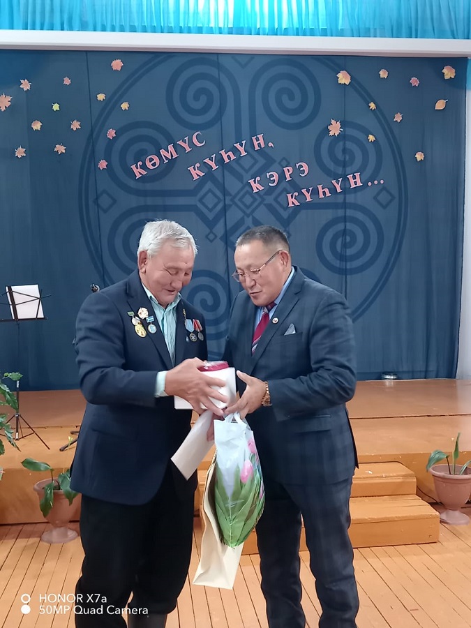 Аҕам саастаах дьоннорбутун оскуола кэлэктиибин аатыттан Ася Ивановна Яковлева, Ольга Ивановна Гуляева эҕэрдэлээтилэр. Ольга Ивановна кэлбит ыалдьыттары көрдөөх оонньуулары ыытан сэргэхситтэ. Олохтоох бибилиотека сэбиэдиссэйэ Варвара Никифоровна бэлэмнээбит араас тиэмэҕэ сыһыаннаах викторинаҕа олус көхтөөхтүк кытыннылар, билиилэрин көрдөрдүлэр, кыайыылаахтарга бириистэри туттардылар. Нэһилиэк бары тэрилтэлэрэ бэйэлэрин бэтэрээннэригэр бырааһынньыктааҕы бэлэхтэрин туттардылар. Тугэнинэн туһанан, бары тэрилтэлэр салайааччыларыгар,»Күннэй» маҕаһыын кэлэктиибигэр барҕа махтал тылларын тиэрдэбит. Ытык-мааны кырдьаҕастарыт сандалы остуол тула ирэ-хоро кэпсэтэн, көрдөөх оонньуулары оонньоон, эҕэрдэ нүөмэрдэри көрөн астыннылар.