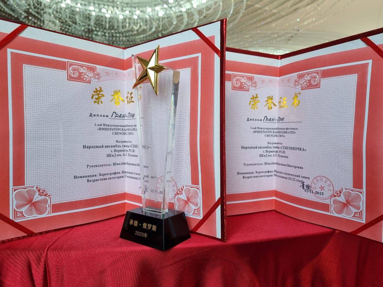 Кэлэктиип Кытай Норуодунай Өрөспүүбүлүкэтин Чэндэ куоратыгар ыытыллыбыт «Императорская мозаика-2025» аан дойдутааҕы бэстибээл-күрэҕэр чаҕылхайдык кыттан, үрдүк таһымнаах тэрээһин сүрүн бирииһин – Гран-притын ылары ситистэ.