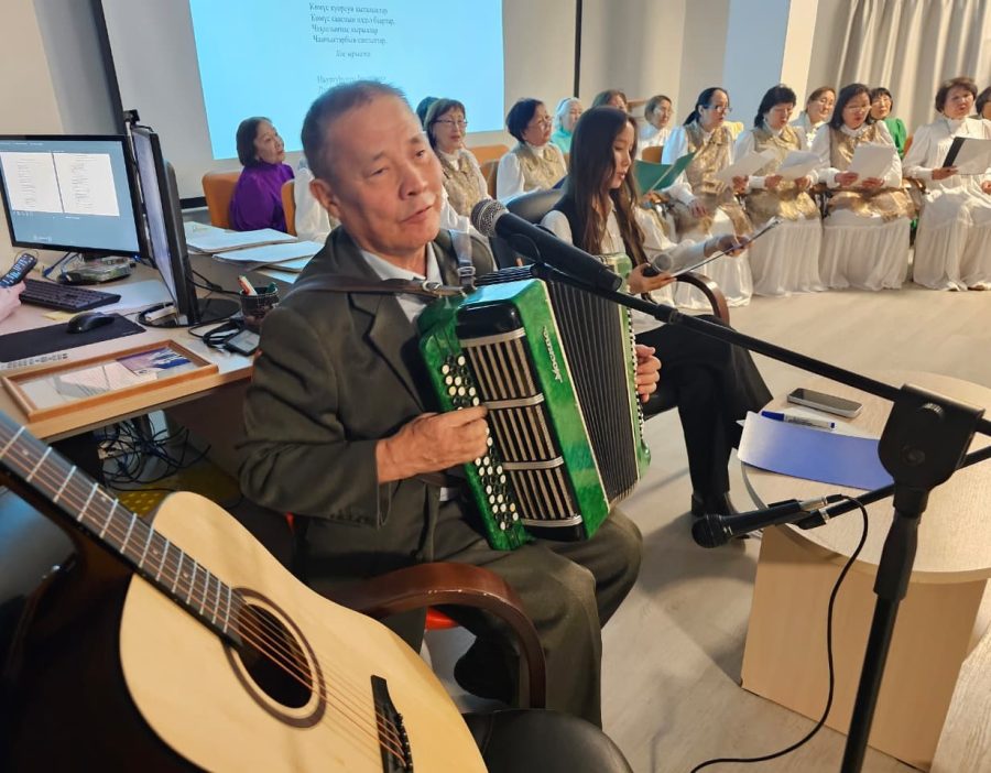 Бу күн мустубут дьон олохторун сорҕотунан буолбут, эдэр эрдэхтэринэ дууһаларын сылааһынан угуттаабыт истиҥ иэйиилээх ырыалары Пантелеймон Романович гитаранан уонна байаанынан доҕуһуолунан толоруутун иһиттилэр уонна тэҥҥэ ылластылар.