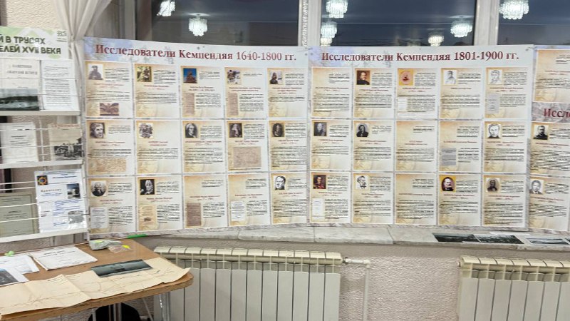 Бу улахан тэрээһиҥҥэ Кэмпэндээйи нэһилиэгин бибилэтиэкэ-түмэлин сүрүн бибилэтиэкэрэ Татьяна Ивановна Местникова «XVII үйэттэн Кэмпэндээйи — чинчийээччилэр үлэлэригэр» уонна 1925 сыллаах ССРС Наукаларын эспэдииссийэтэ Сунтаар улууһугар сылдьан Кэмпэндээйи туһунан кинигэлэрин быыстапката улахан сэҥээриини ылла. Сунтаар улууһун устуоруйатыгар Кэмпэндээйи биир улахан суолталаах, биллэр-көстөр миэстэни ылар. Ол курдук, улууска аан бастакы сурукка киирбит докумуонунан нуучча хаһаактара 1640 сыллаахха тууһу хостообуттарын туһунан архыыпка көстүбүт сурук (отписка) буолар. Быыстапкаҕа олус сэдэх докумуоннар, үйэлээх кинигэлэр, сэдэх хаартыскалар, чинчийээччилэр туһунан стендэлэр турбуттар. XVII үйэҕэ нуучча судаарыстыбатыгар биллэр картограф, устуорук, Сибиир бастакы атлаһын оҥорбут Семен Ремезов Кэмпэндээйини киллэрбит каартата, Витус Беринг эспэдииссийэтин учуонайдарын үлэлэрэ, Улуу императрица Екатерина II оҥорбут туус туһунан Устааба, 1841 с. бэчээттэммит Бүлүү уокуругар бастакы быраас Александр Уклонскай ыстатыйата, 1908 с. Дьокуускайга тахсыбыт Петр Драверт «Экспедиция в Сунтарский соленосный район» диэн Кэмпэндээйи тууһун туһунан аан бастакы научнай кинигэ, 1917 с. бэчээттэммит хайа инженерэ Константин Егоров суруйуутугар аан бастакы туустаах сирдэр хаартыскалара, эспэдииссийэ маршрутун каарталара уонна да атын сэдэх кинигэлэр бааллар.