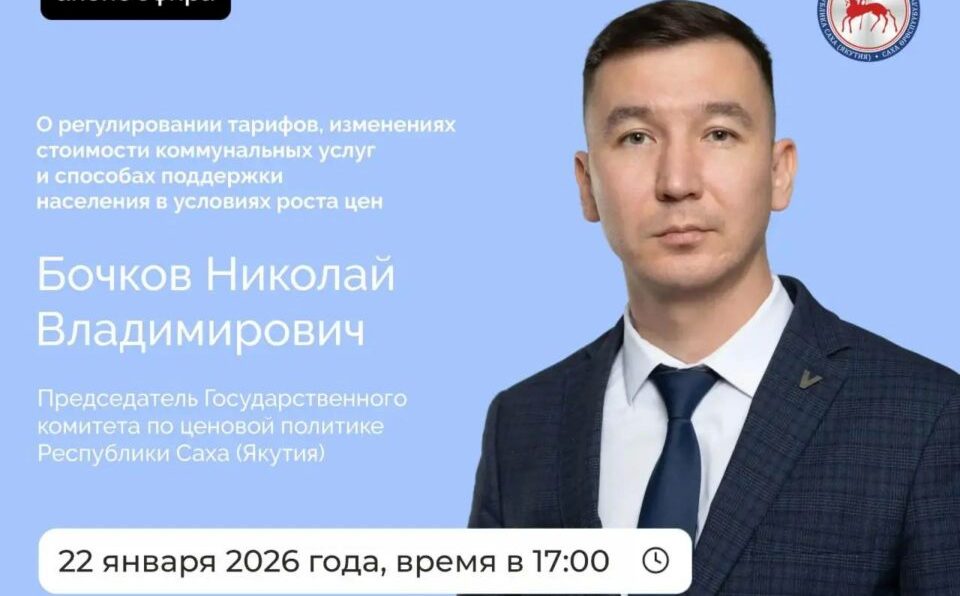 Николай Бочков тарыыптар, хомунаалынай өҥөлөр сыаналарын уларыйыыта уонна сыана үрдээһинин кэмигэр нэһилиэнньэни өйүүр ньымалар тустарынан кэпсиэҕэ. Ону таһынан, Sakhagov аккауннарыгар быһа эпиир кэмигэр киирэр ыйытыыларга хоруйдуоҕа. Эпиир 17:00 чааска саҕаланар. Сигэлэр: ВКонтакте, Одноклассники.